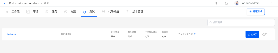 此外我们还可以来新建一些测试用例,在测试页面点击新建测试