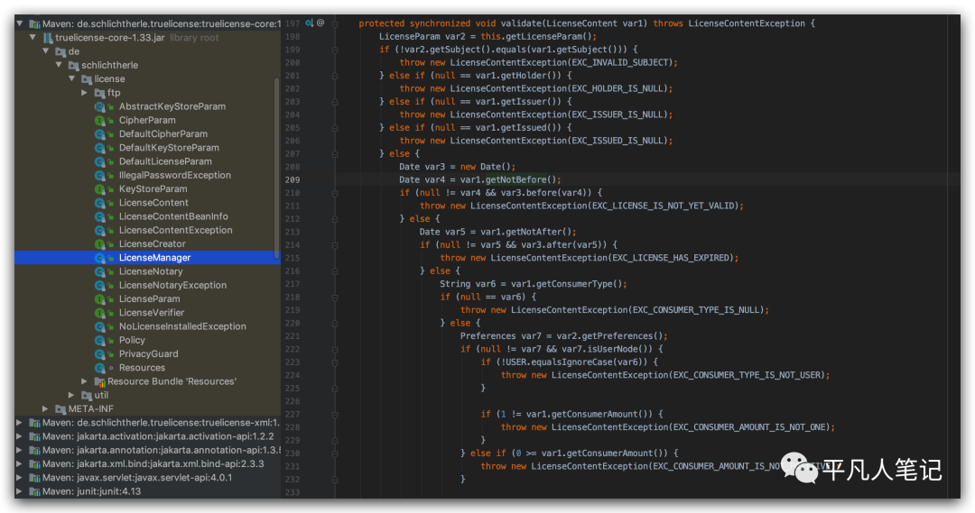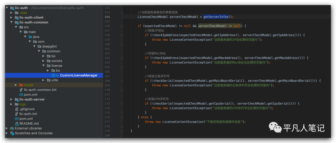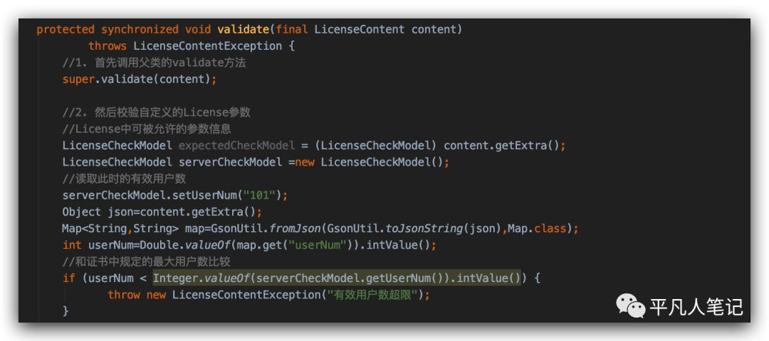 通用的校验类LicenseVerify,其子类CustomLicenseManager中实现自定义的校验逻辑,比如服务器硬件信息校验,比如业务校验:在线用户数校验
