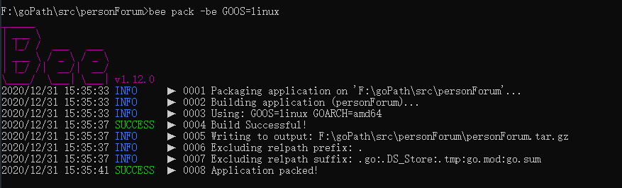 bee pack -be GOOS=linux