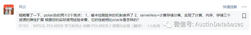 对于POLARDB 敢兴趣的同学应该不止这一位,而这位同学的问题,其实是很多对于POLARDB 敢兴趣的同学可能都想问的问题。