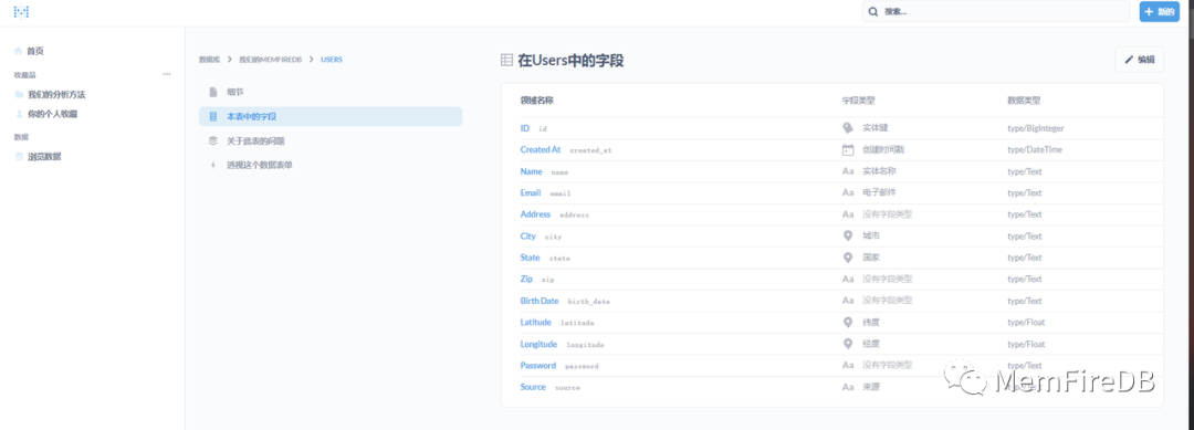点击“我们的MemFireDB”即可查看该数据库中的数据表。
