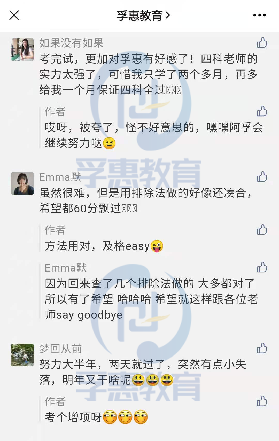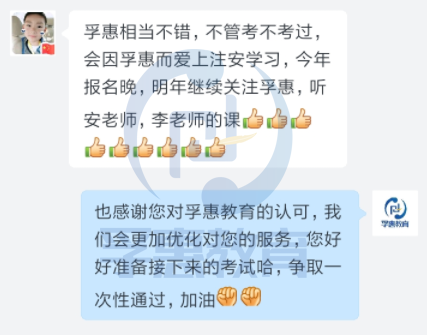 “因材施教,以人为本”,为适应不同入学时间、不同学习基础的学员情况,孚惠教育还专门设置了多种不同班型,有针对性的对学员进行定制化教育,从而最大程度提高学员的考试通过率,让学员能够学有所获。