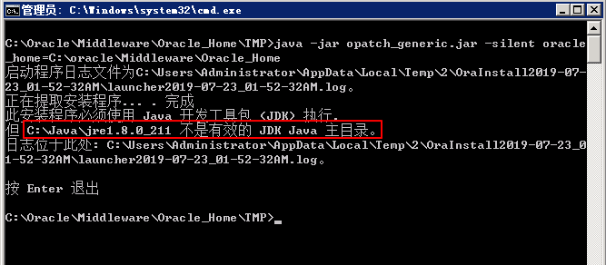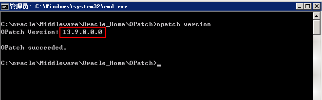 进入 C:\oracle\Middleware\Oracle_Home\OPatch 目录,执行以下命令: