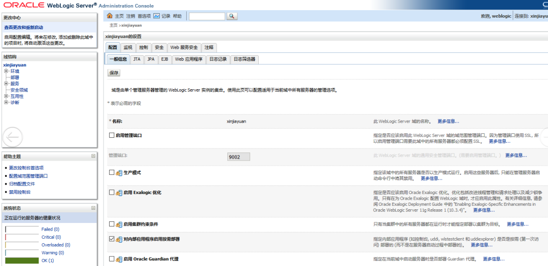 重启 WebLogic 服务,并验证业务是否能够正常使用。