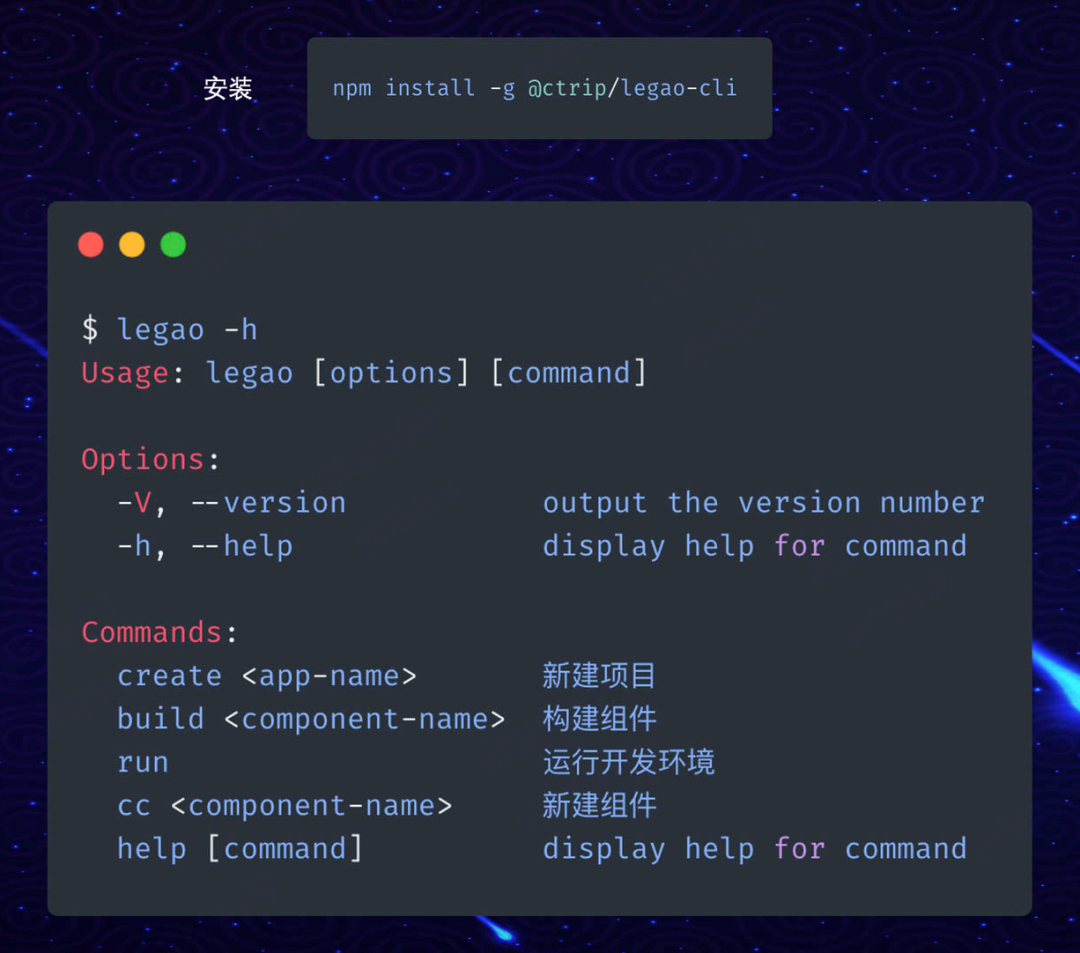 @ctrip/legao-cli 能够创建跟线上运行环境高度一致的“开发环境”,能够通过proxy模式,代理测试线上代码,能够构建组件资源等。如下: