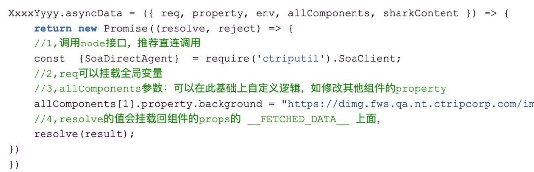 2)req可以挂载单次请求级别的全局变量,例如一个页面上有多个同一类型组件,每个都需要在node环境获取用户信息,那这个信息就可以挂载在req,防止同种组件重复请求。3)allComponents参数:可以在此基础上自定义逻辑,如修改其他组件的property控制它的具体渲染。4)如有seo相关需求,可在asyncData resolve数据中返回自定义seo数据(框架会提前处理好动态meta等seo相关数据)。2.3 provideData静态变量