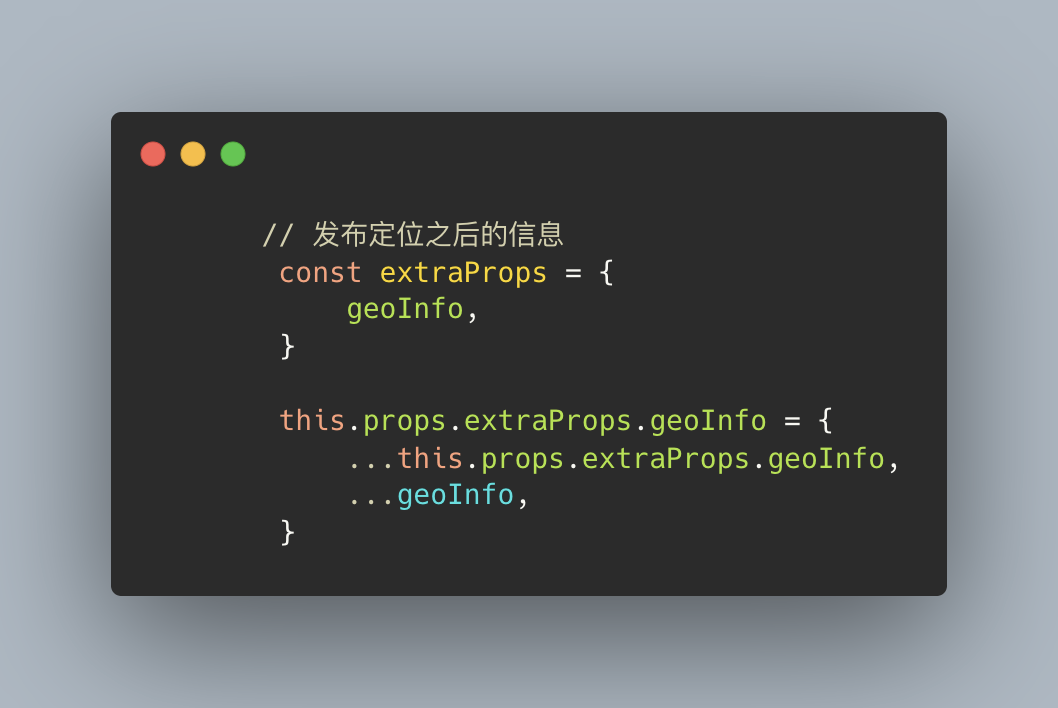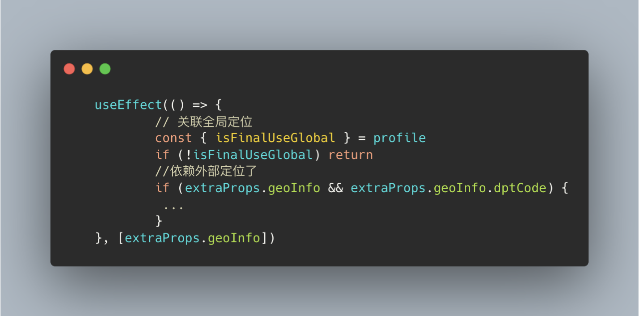 也可以放在如useEffect中监听(类组件可通过在componentDidUpdate等生命周期中监听)props.extraProp上的具体某个字段,如定位信息geoInfo。