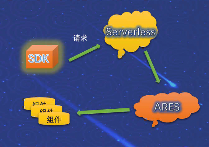 渲染引擎通过ARES相应的API(如:在node端预热组件资源,获取单个组件最新有效版本,资源地址等)获取到资源地址,然后在服务端下载组件的javascript资源文件的文本内容,并通过requireFromString将字符串文件转换为内存变量module,即而完成服务端的渲染,而客户端则动态加载这些异步js,完成客户端的渲染。