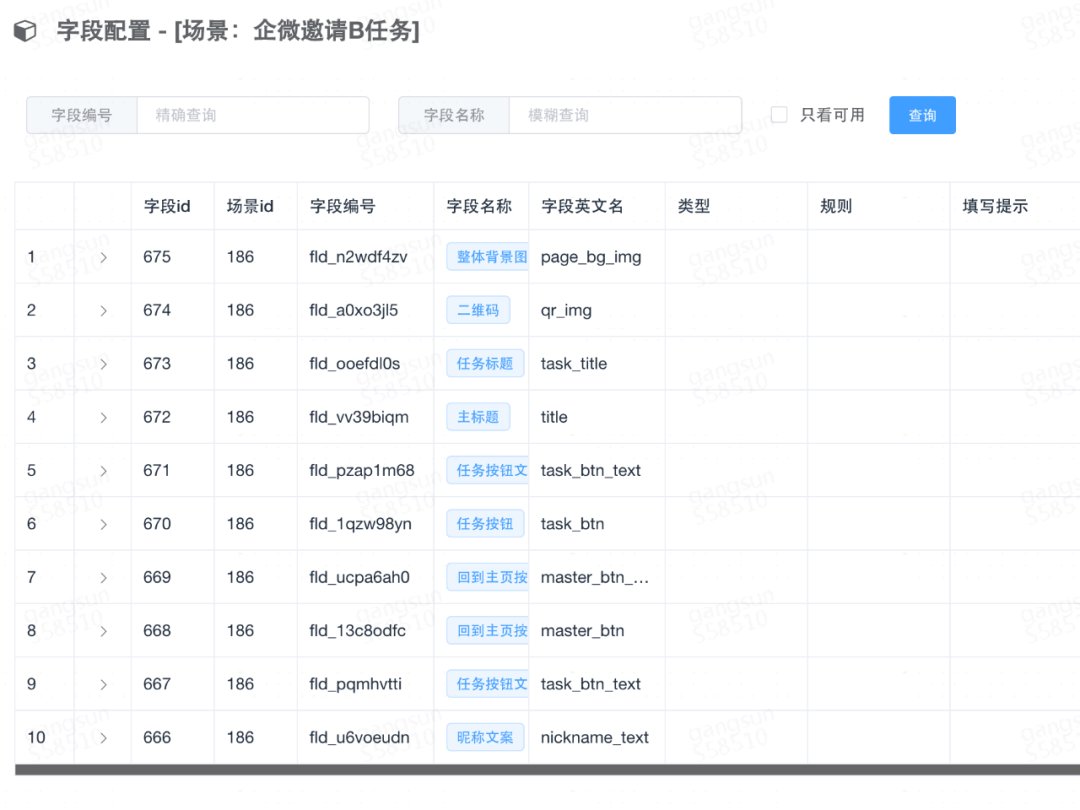乐高开放了这个界面的拖拽配置能力和接口服务能力,比如你有一个需要运营自己拖拽配置界面的需求,但是不需要乐高默认的渲染,那你可以在这个场景下新增场景,并配置自定义字段。然后将上图中的“可选字段组件”跟这些自定义字段进行关联,使用方(也就是开发同学)通过接口获取运营同学配置之后的数据,就可以根据实际需求进行渲染(可不依赖乐高渲染)。