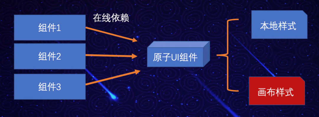 乐高组件众多,300+组件,有丰富的组件资源,应该是比较适合这种的一种场景。接上文产品组件的问题,现在乐高有了一种这种“云”依赖组件的机制,我们可以开发“UI原子组件”,这种组件就是纯静态的UI组件,也是普通的乐高组件,支持跟其他“乐高组件”一样的各种机制,拥有一样的数据结构。那么现在我们可以在产品组件A,B等里面声明依赖“UI原子组件”,然后传入“原子组件”所需要的所有的业务字段,渲染类型字段等,这样就可以使所有的产品组件(A,B,C…)使用到“UI原子组件”的样式,这个组件能够不断迭代优化下去。而需要修改、维护UI的时候,基本只需要发布“UI原子组件”这一个组件就好了。