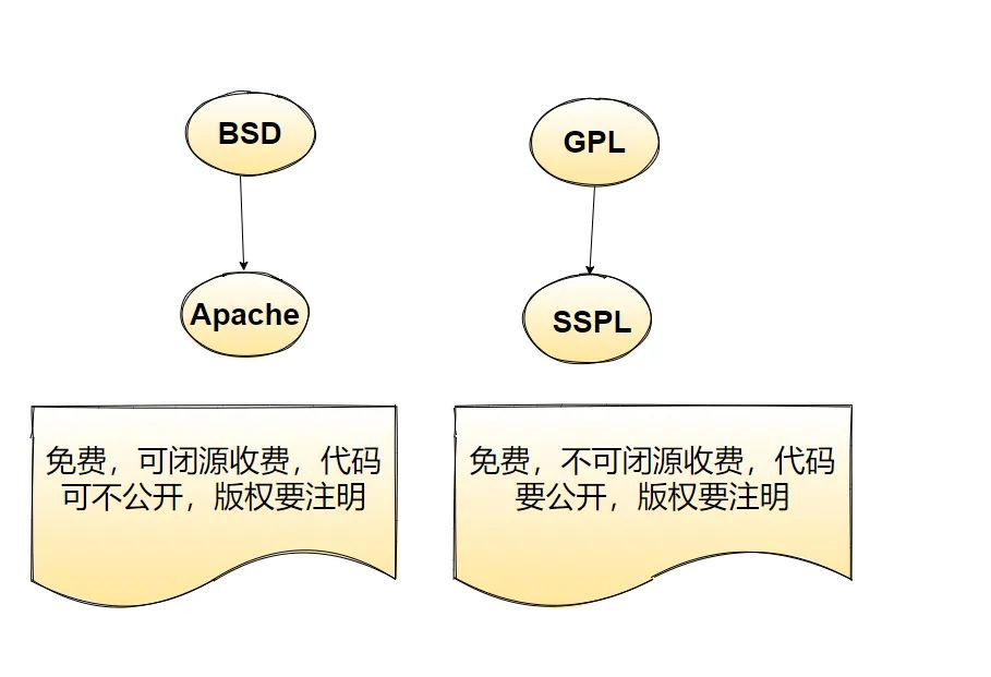 下面用一张图说明,SSPL 与 Apache2.0 的本质区别:
