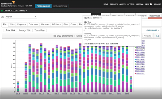SolarWinds数据库性能分析器中的查询性能分析
