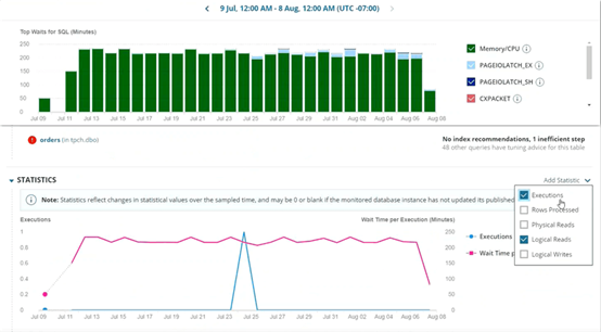 当您从30天趋势视图中单击查询哈希时,将显示过去30天该查询的所有性能指标-保持时间框架一致。新的查询性能分析视图包含可折叠/可扩展的多个部分,因此可以将重点放在最重要的数据上。该视图中的数据可以通过两种方式智能显示: