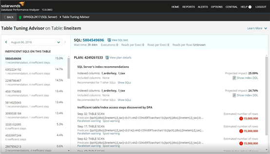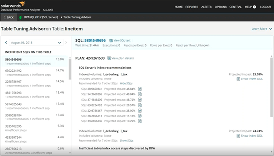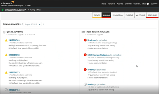 SolarWinds数据库性能分析器中的表优化顾问