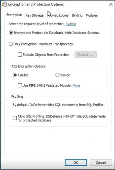 要开始定制过程,您可以解密数据库并开始对配置进行更新。在“加密”选项卡上,您可以自定义已加密的对象和架构,更改AES加密级别并管理SQL Server Profiler能够看到的数据。