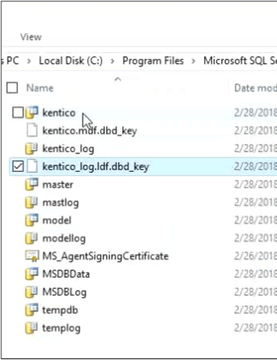 在下面的屏幕快照中,密钥被导出并作为两个dbd_key文件与数据库一起存储。