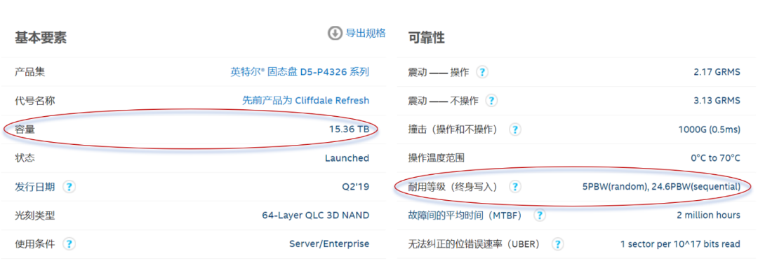 图2. D5-P4326 QLC系列可靠性参数