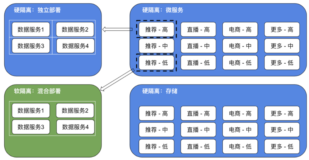 不管是微服务,还是存储,我们都按照业务+优先级(高、中、低)粒度隔离部署,独立保障,业务之间互不影响、业务内不同级别也互不影响。