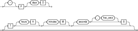select to_dsinterval('5 23:58:59.23574') from dual; to_dsinterval ------------------------ 5 days 23:58:59.235740 (1 行记录) select to_dsinterval('P5DT23H21M19.38S') from dual; to_dsinterval ------------------------ 5 days 23:21:19.380000 (1 行记录)