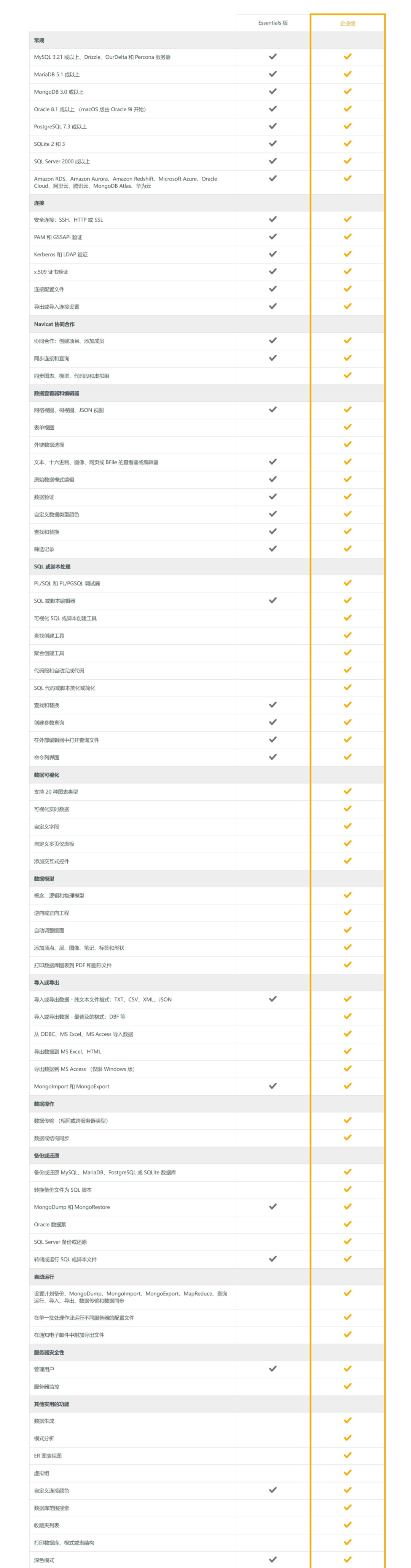 以下附上Navicat 功能列表,欢迎有需要的朋友们点击这里下载免费试用版使用!