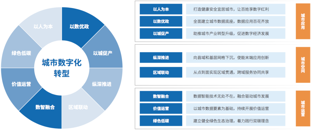 白皮书介绍了我国城市数字化转型的背景、内涵、机理和发展方向,即在“以人为本”的核心价值驱动下,逐步向“以数优政、以城促产、纵深推进、区域联动、数智融合、价值运营、绿色低碳”迈进。