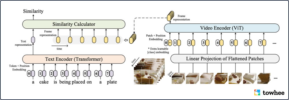 CLIP4Clip 基于预训练好的图文模型,通过迁移学习或者微调完成视频检索的任务。它使用预训练的 CLIP 模型作为主干网络,解决了从帧级输入的视频片段检索任务,并使用了无参数类型 、序列类型和紧密类型相似性计算器来获得最终结果。