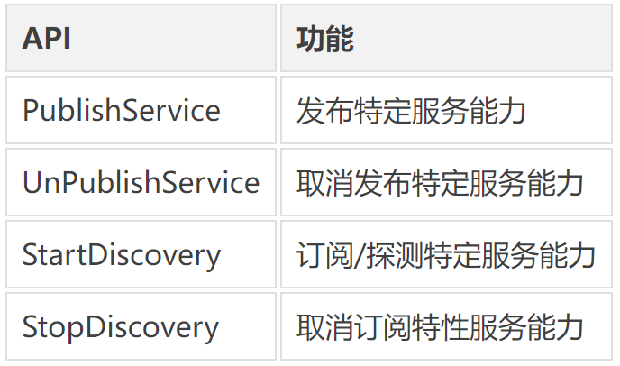 1. discovery\_service.h:发现模块头文件,支持应用主动探测和发布的API如下:
