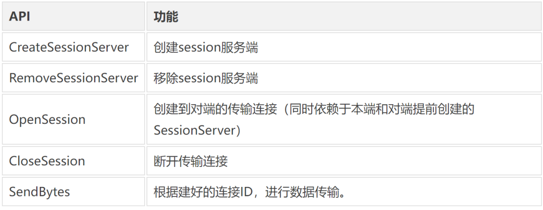 3. session.h:连接/传输模块头文件,支持创建session和数据传输API如下: