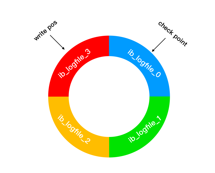 知道了写入时机,这里简单介绍下写入的方式吧。在 Innodb 中,redo log 的大小是固定的,那么就只能是以循环的方式进行写入了。假如当前我有 4 个文件,从第一个文件开始写入,直到最后一个文件写满为止,再回到开头将数据同步至文件后擦除掉继续写。