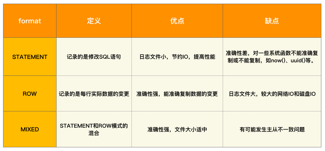 binlog 中有三种写入模式,我们分别来看下有什么不同及对应的优缺点: