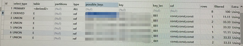 其实仔细观察上面这个SQL,derived table中union all连接的前三个SQL检索条件基本是一致的,而union all连接的后两个SQL检索条件基本是一致的,只是SELECT中concat内容不同,因此能做改写。