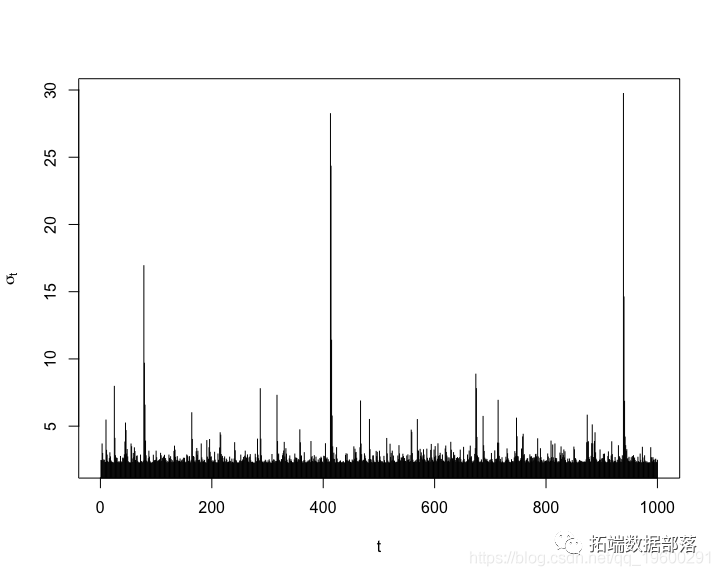 plot(sig, type = "h", xlab = "t", ylab = expression(sigma\[t\]))