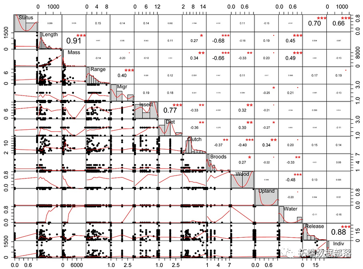 在此示例中,数据包含缺失值。在R中缺失值用NA表示。SAS通常会无缝地处理缺失值。虽然这使用户更容易,但可能无法确保用户了解这些缺失值的作用。在某些情况下,R要求用户明确如何处理缺失值。处理多元回归中的缺失值的一种方法是从数据集中删除具有任何缺失值的所有观察值。这是我们在逐步回归过程之前要做的事情,创建一个名为Data.omit的数据框。但是,当我们创建最终模型时,我们只想排除那些在最终模型中实际包含的变量中具有缺失值的观察样本。为了测试最终模型的整体p值,绘制最终模型,或使用glm.compare函数,我们将创建一个名为Data.final的数据框,只排除那些观察结果。