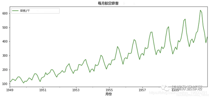 以下是一个时间序列示例,该示例说明了从1949年到1960年每月航空公司的乘客数量。