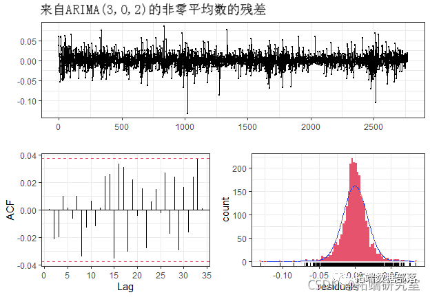 拟合SPY收益的 ARIMA(3,0,2) 模型的残差