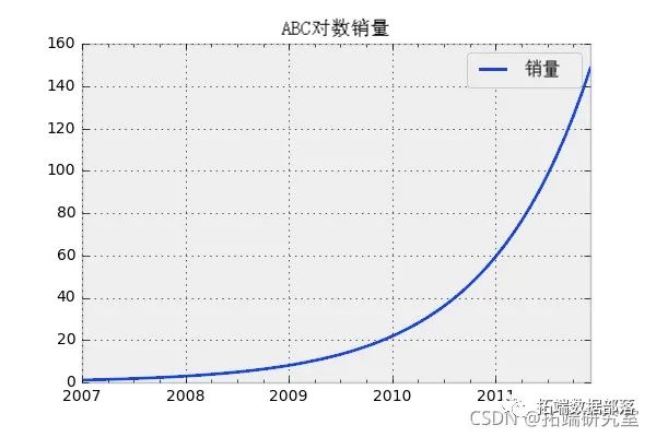 这些模型与线性模型类似,只是数据点形成了一个指数函数,代表了相对于每个时间步的恒定变化率。例如,ABC公司的销售额在每个时间步长增加X%。当绘制模拟的销售数据时,你会得到一条看起来像这样的曲线。
