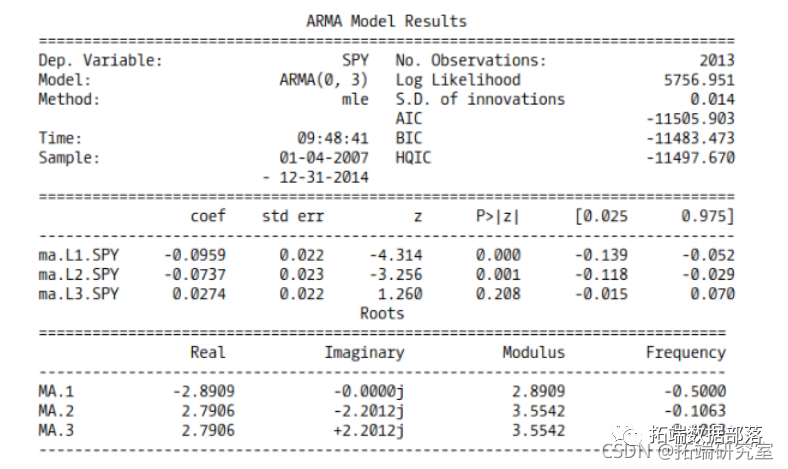 # 将ARIMA(p, d, q)模型适用于SPY收益