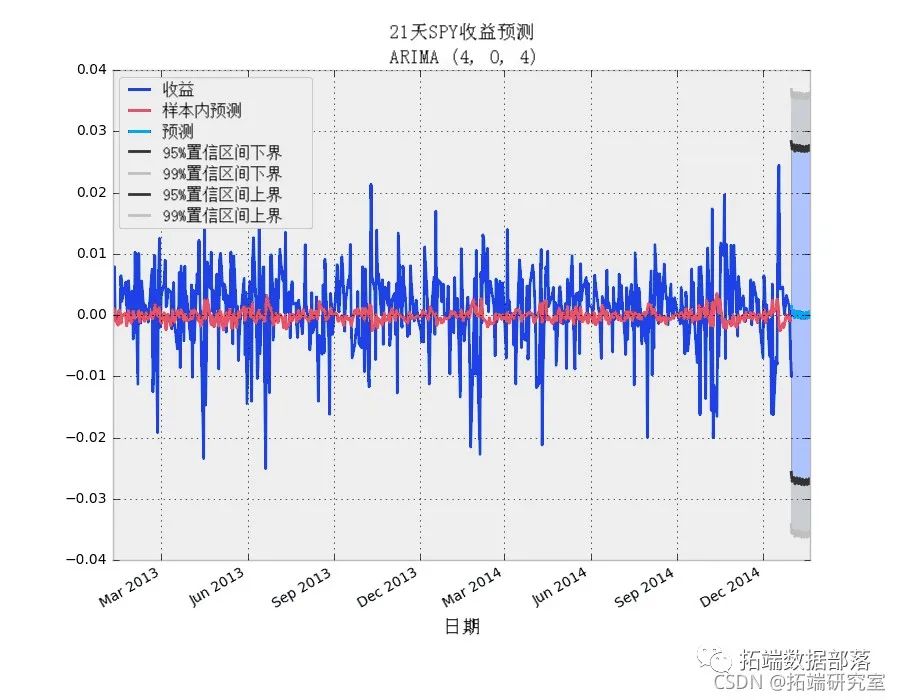 21 天SPY收益预测 - ARIMA(4,0,4)