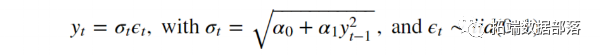 Y\[t\] = w\[t * sqrt((a0 + a1\*y\[t-1\*\*2)