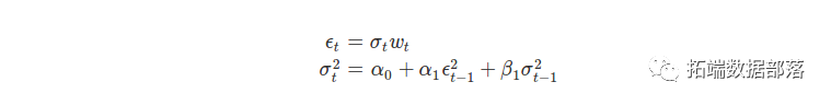 ARCH(p) 模型可以简单地认为是应用于时间序列方差的 AR(p) 模型。另一种思考方式是,我们的时间序列 _在时间 t_的方差取决于对先前时期方差的过去观察。