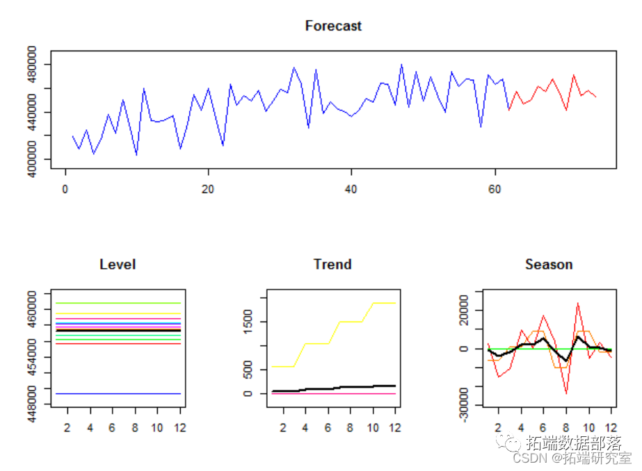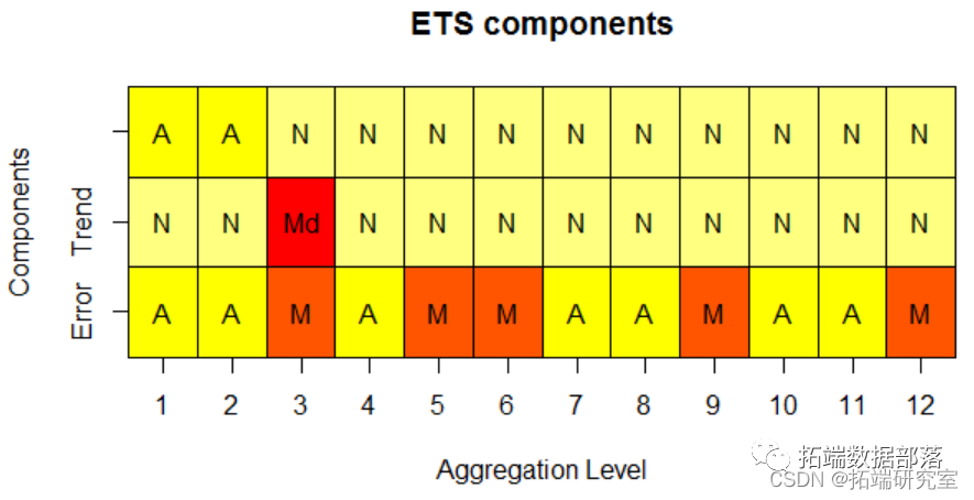 第一估计模型在每个时间聚合级别的拟合度,还提供已识别_ETS_组件的可视化。 第二提供样本内和样本外预测。