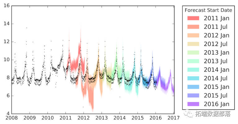 这提供了序列和预测的简单图解:每个时间预测状态的详细视图:
