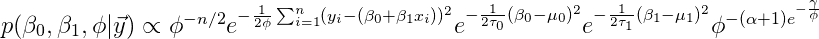 这篇文章将概述这些原理如何扩展到简单的线性回归。我将导出感兴趣参数的后验条件分布,给出用于实现Gibbs采样器的R代码,并提出所谓的网格点方法。