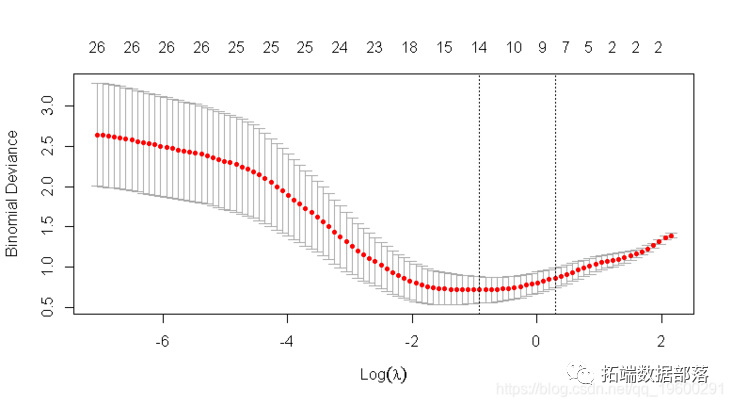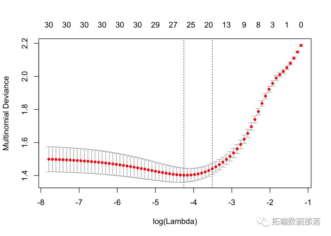 我们拟合模型 glmnet