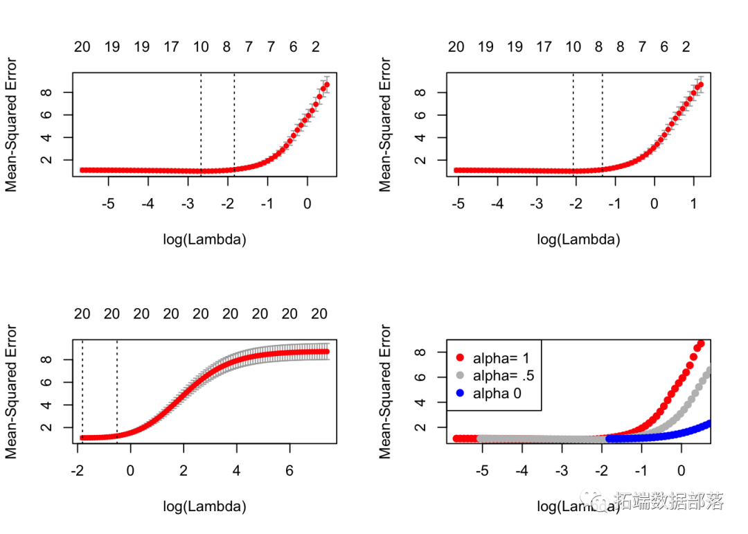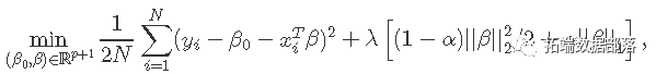 。 _弹性网络_惩罚由α控制,LASSO(α= 1,默认),Ridge(α= 0)。调整参数λ控制惩罚的总强度。