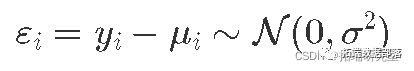 或者,残差,即观察值和预测值之间的差异,遵循均值为 0 且方差为 σ2 的高斯分布: