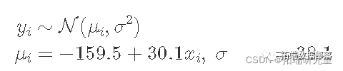 我相信观测值 yi 是从具有平均 μi 的正态(又名高斯)分布中得出的,这取决于温度 xi 和所有温度下的恒定方差 σ2。