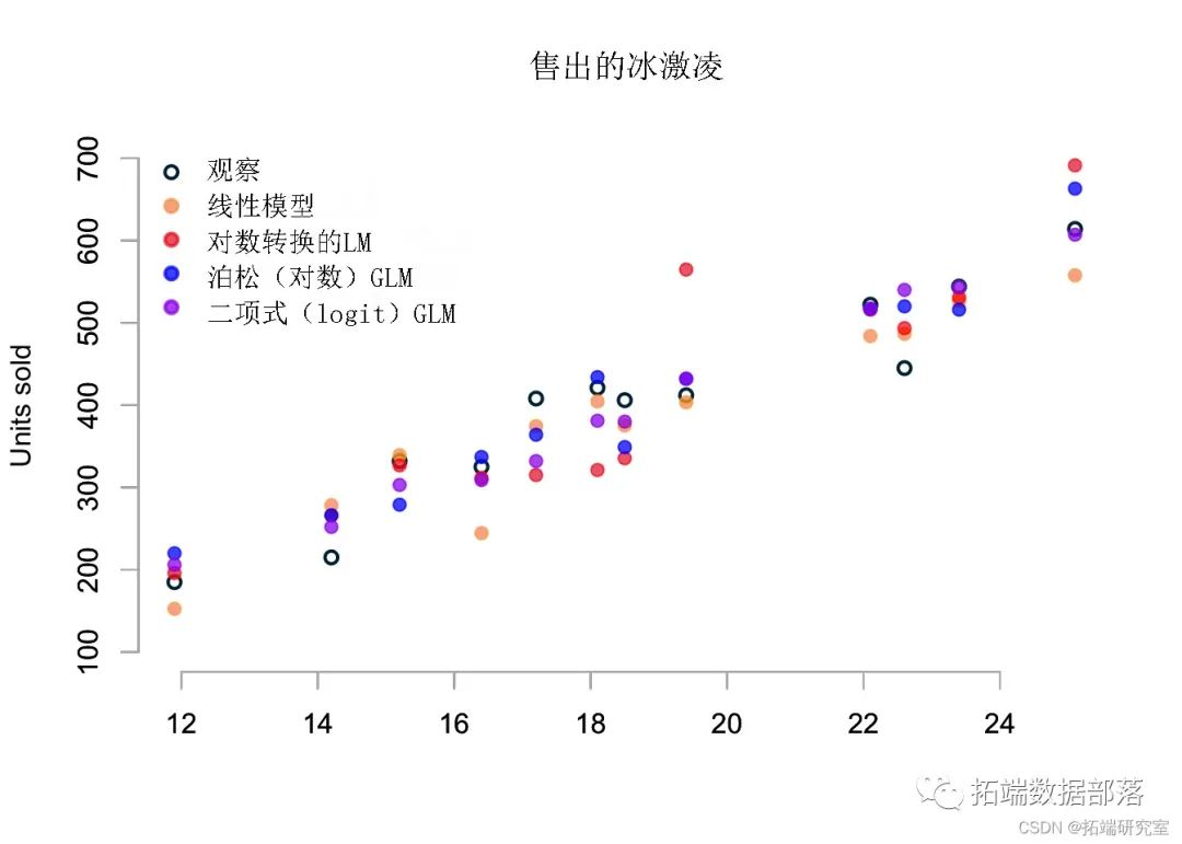 此外,对数转换和泊松模型在 25.1ºC 时的高销售额预测也不意外。