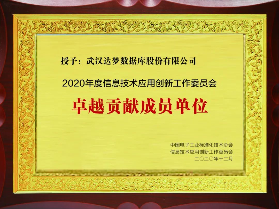 近日,信息技术应用创新工作委员会(简称“信创工委会”)“2020年度总结座谈会”顺利举行。武汉达梦数据库股份有限公司作为我国基础软件领域的创新代表,凭借在信创领域的突出贡献,被授予2020年度信息技术应用创新工作委员会“卓越贡献成员单位”。