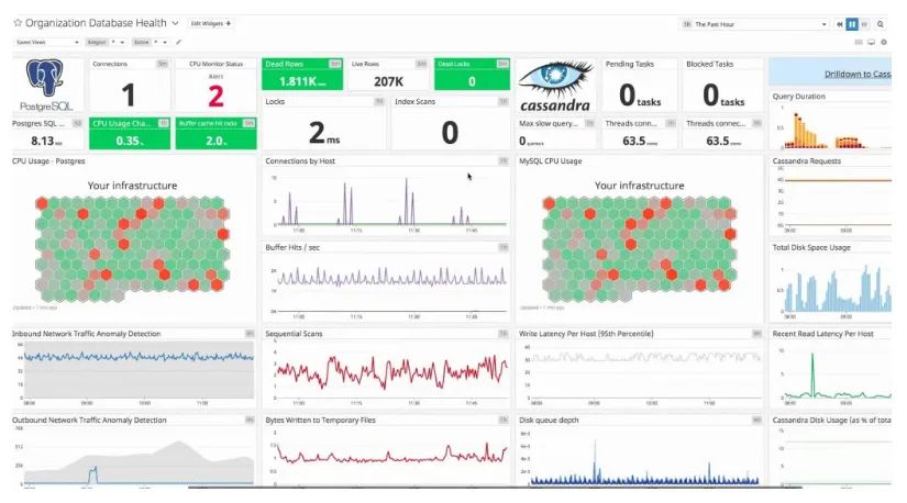 除了服务器资源,数据库运行状态和性能监控,它的出色之处在于,细节的可视化。在统计图半边天的软件里,居然还能再加色彩一维。
